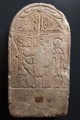 Stele votiva con figure del dio khonsu e del faraone dedicante (ano...