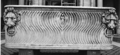 Sarcofago a vasca (lenós) strigilato con protomi di leone. Nella ma...