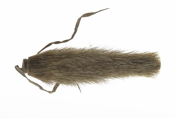 La spazzola, realizzata con aculei di porcospino, era un oggetto di uso quotidiano presso i Nativi delle Grandi Pianure che utilizzavano normalmente gli aculei di questo animale (ammorbiditi con acqua o con la masticazione e colorati con pigmenti naturali) per decorare oggetti e capi di abbigliamento. La coda costituiva la parte del corpo ideale per farne spazzole per capelli: infatti è ricoperta da setole più morbide rispetto agli aculei – più lunghi e rigidi - che si trovano sul dorso e che si sollevano quando l’animale di sente minacciato. La pelle veniva accuratamente avvolta e fissata (cucita) intorno ad un cilindro ligneo che fungeva da supporto rigido.