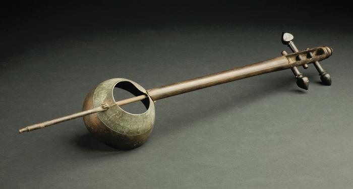Joze o kemanche, liuto ad arco fornito di tre bischeri con cassa armonica semisferica in bronzo inciso.