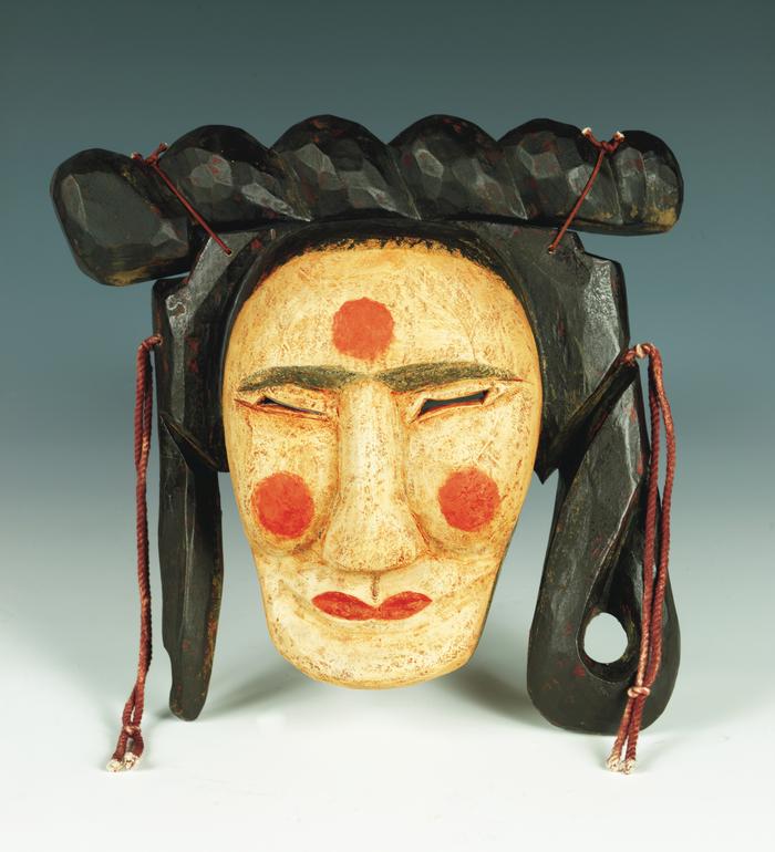 Maschera tradizionale Tal-nori raffigurante la giovane sposa Kakshi, utilizzata in origine nelle danze sciamaniche