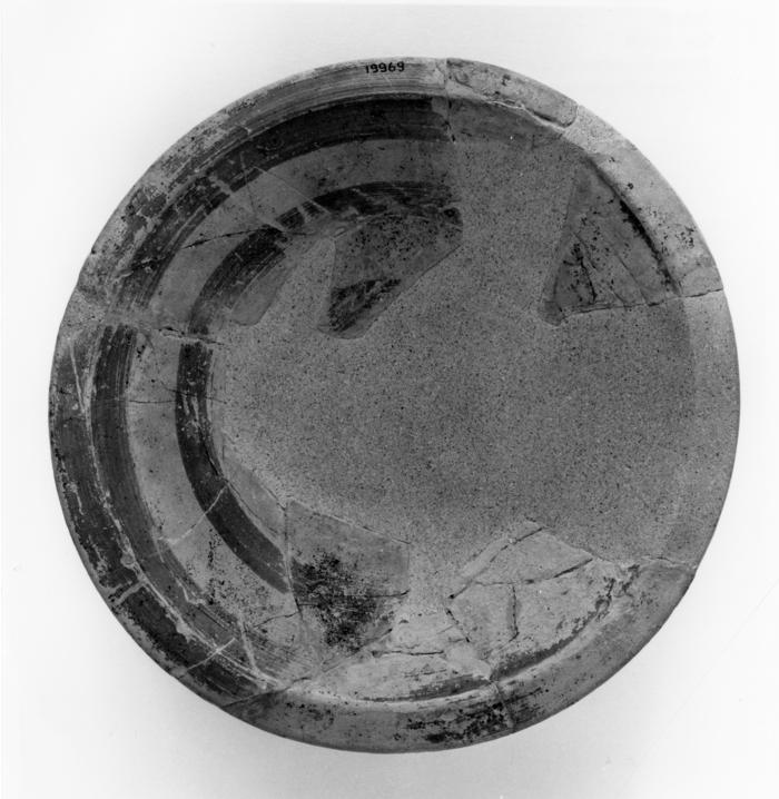 Piatto in stile sugeometrico con decorazione a fasce concentriche, frammentario