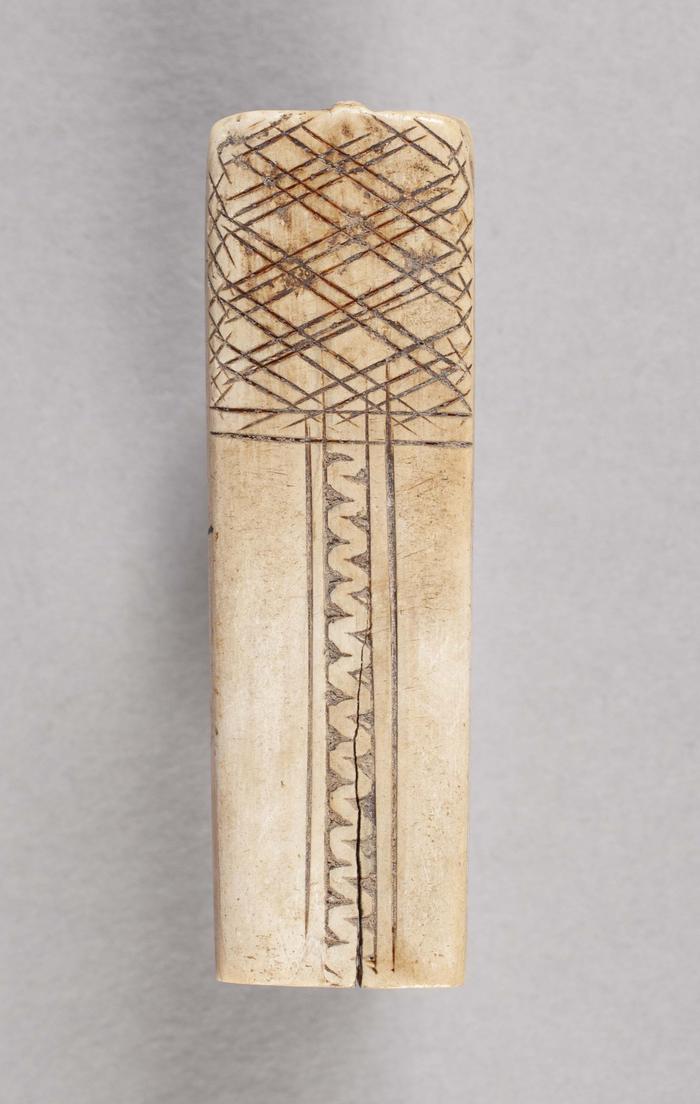 Manico ornato con incisioni a losanghe incrociate e a nastro