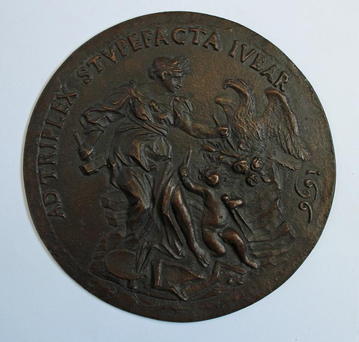 Medaglione circolare a rilievo, con allegoria della Scultura e delle Arti del disegno