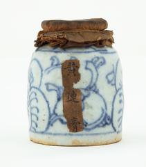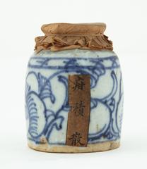 Vaso con medicamento in polvere (Unguento Yuhong, 玉紅膏).