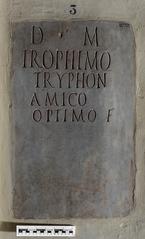 Lastra con iscrizione sepolcrale di Trophimus, posta dall'amico Try...