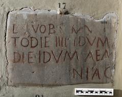 Lastra, mutila su tutti i lati, con iscrizione sepolcrale posta al ...
