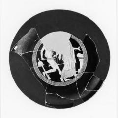 Kylix di fabbricazione attica a figure rosse, frammento. Interno: s...